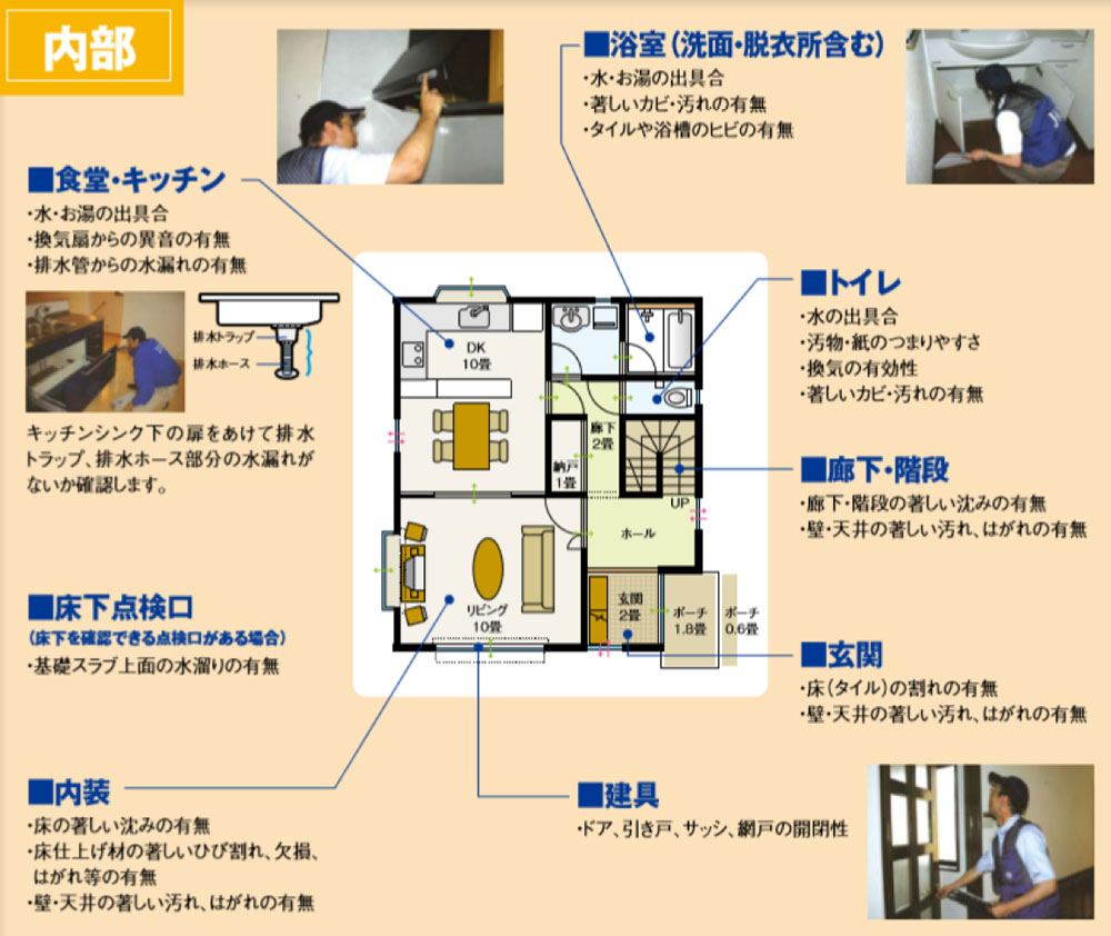 アフター点検の内容は、第三者機関(JIO)の点検員が引き渡し後のお住まいを訪問し、外壁の劣化状況、住まいの設備、建具や内装について、日常の使い勝手や不満な点、ほしい機能や設備などを聞き取りし、オーナー様に代わって当社へ伝える仕組みです。